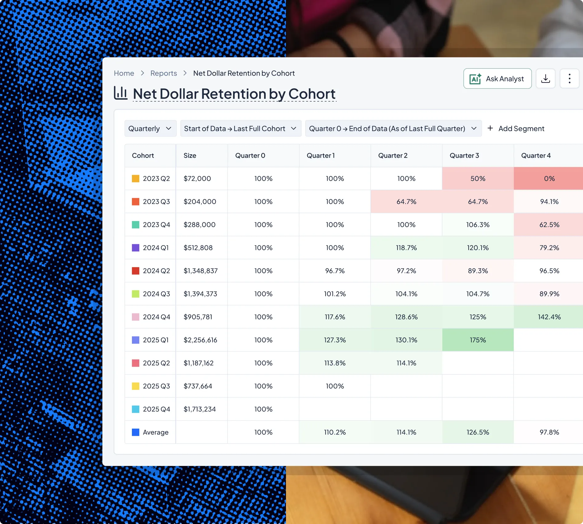 Analyze revenue trends with AI, segment your data to unlock insights, and monitor budget-to-actuals to make sure your team stays on track.