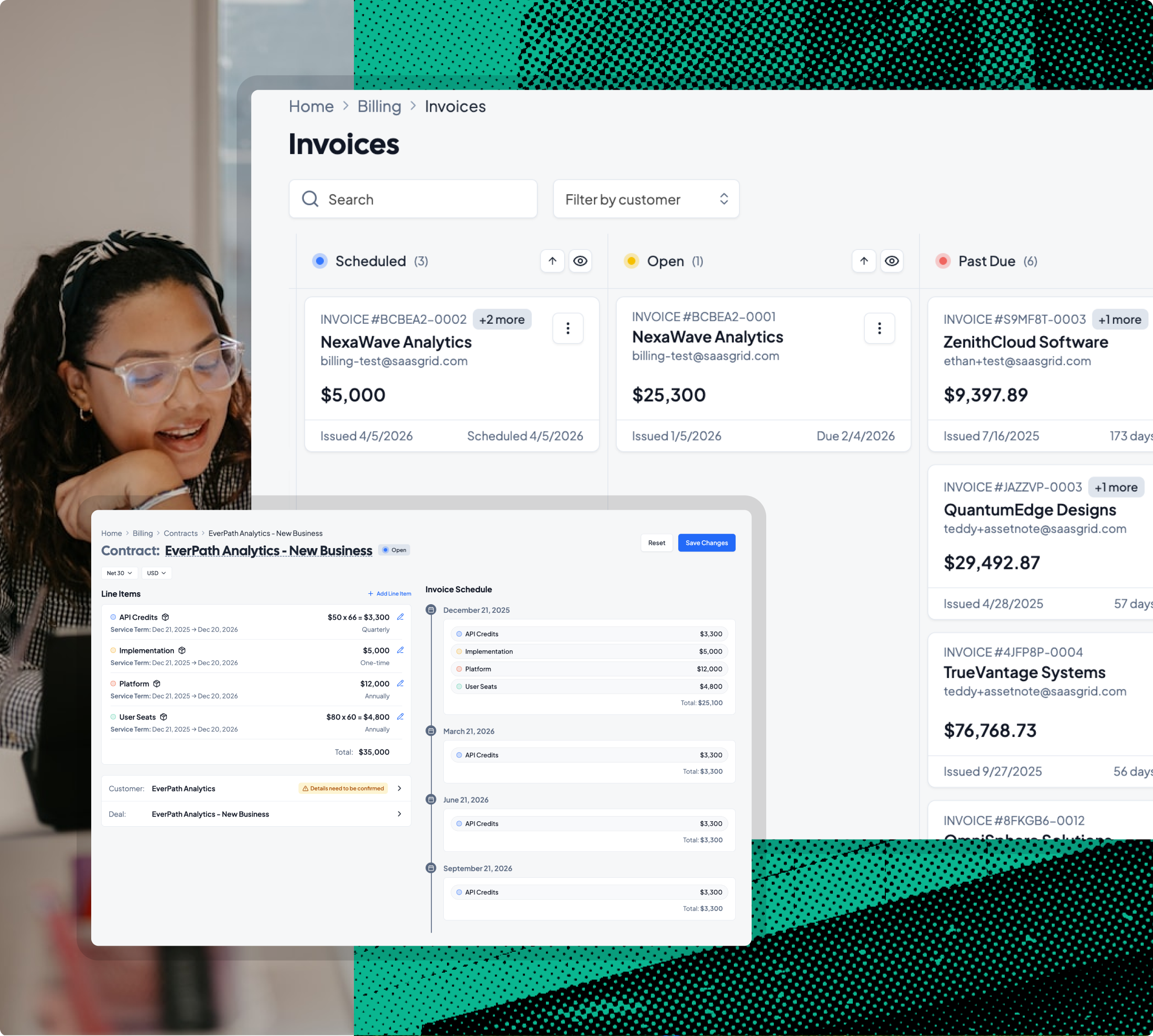 When a deal closes in HubSpot, Grid can automatically create a contract, generate an invoice schedule, collect payment, and sync invoice data to your ERP. That means your deal flow directly powers billing and revenue reporting.