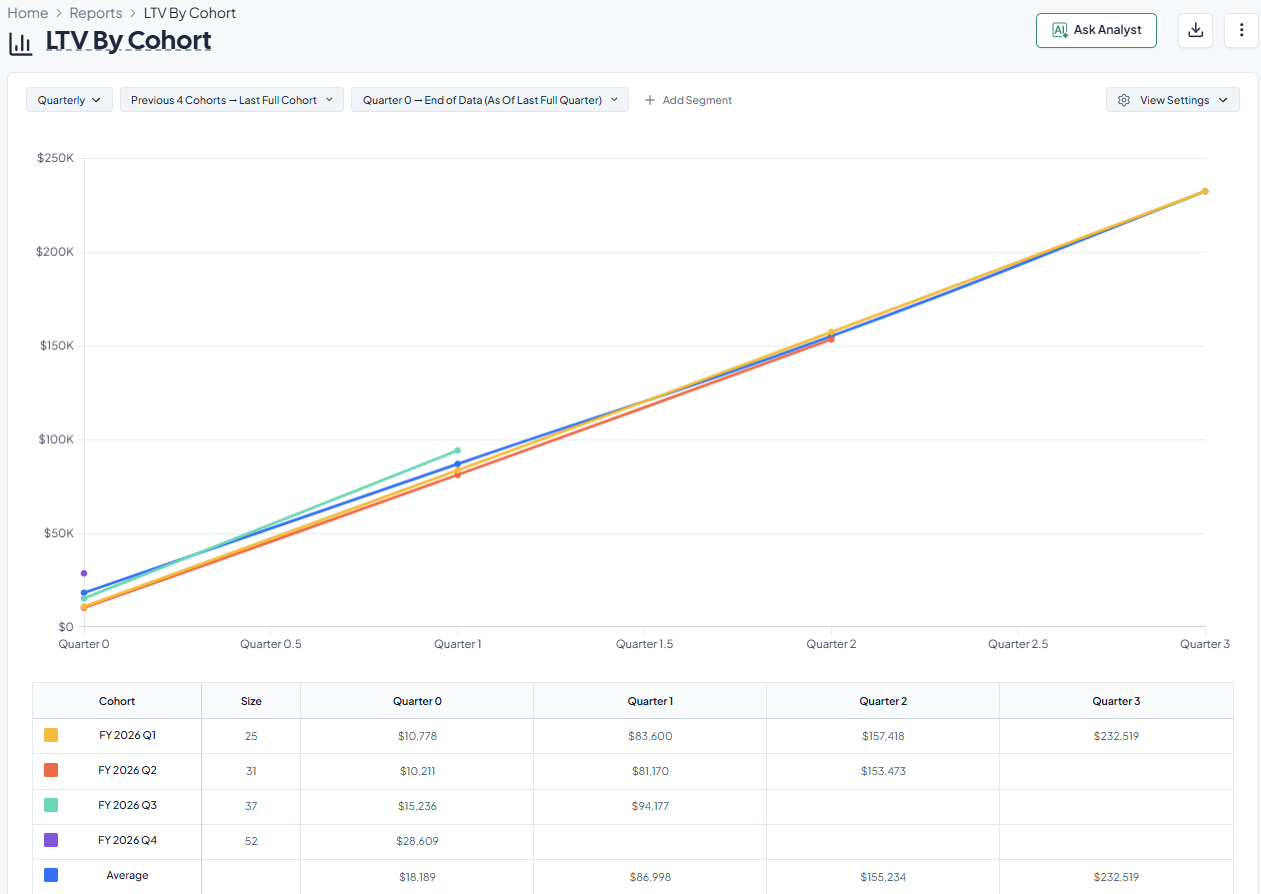 This variability makes LTV harder to calculate, but also more informative. High LTV signals two things: you’re targeting the right segments, and you know how to nurture them. Conversely, low LTV might indicate underpricing, limited upsell potential, targeting low-value segments, or most importantly a lack of delivery of tangible value to customers. Any of these factors can make investments in growth especially risky.